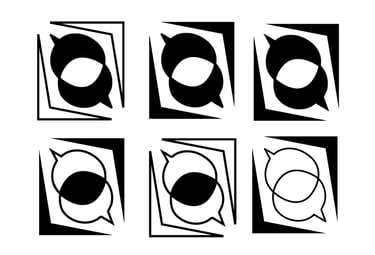 Moving forward with the first concept shown above, the form of the logo was solidified. Instead of using a frame of even thickness, I created a frame that was more dynamic within which to house the speech bubbles.