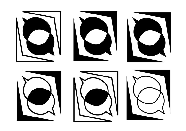 I also explored different ways to colour the shapes within the logo, exploring ways to also bring out the venn-diagram-like essence of the overlapping speech bubbles.