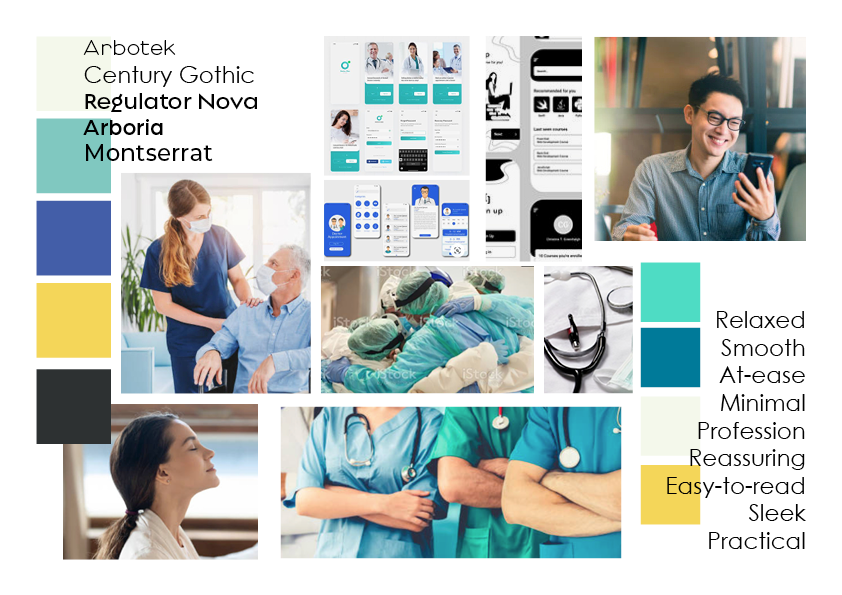 Branding mood board. Fonts chosen were soft and easy to use, while the colours were calm and friendly.