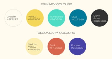 The final branding also looked at colours, fonts, and illustrated accent elements.