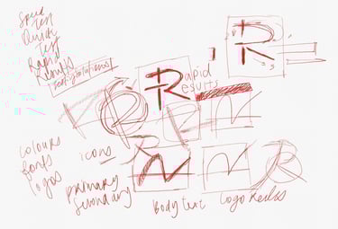 Early sketches for the logo explored the use of the letter R as the key visual element. Playing around with combining the letter R with a clock or stopwatch produced the early sketches of the final form of the logo.